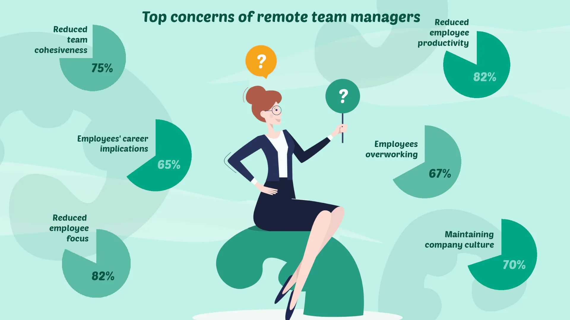 Interestingly, employers and managers are concerned both about dropping productivity and overworking. The only way to tackle these challenges is to make the organization as transparent as possible.