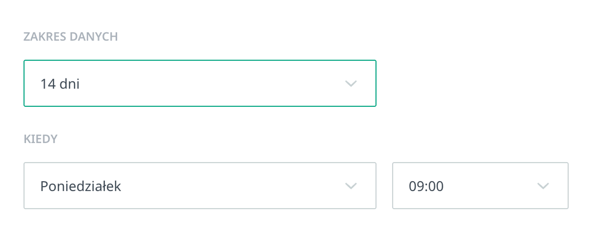 Specify the date range the system should scan for reminders — for example, fourteen days ahead. Set when the notification should appear (day of the week and time) and who it applies to — the entire company or just a selected department.