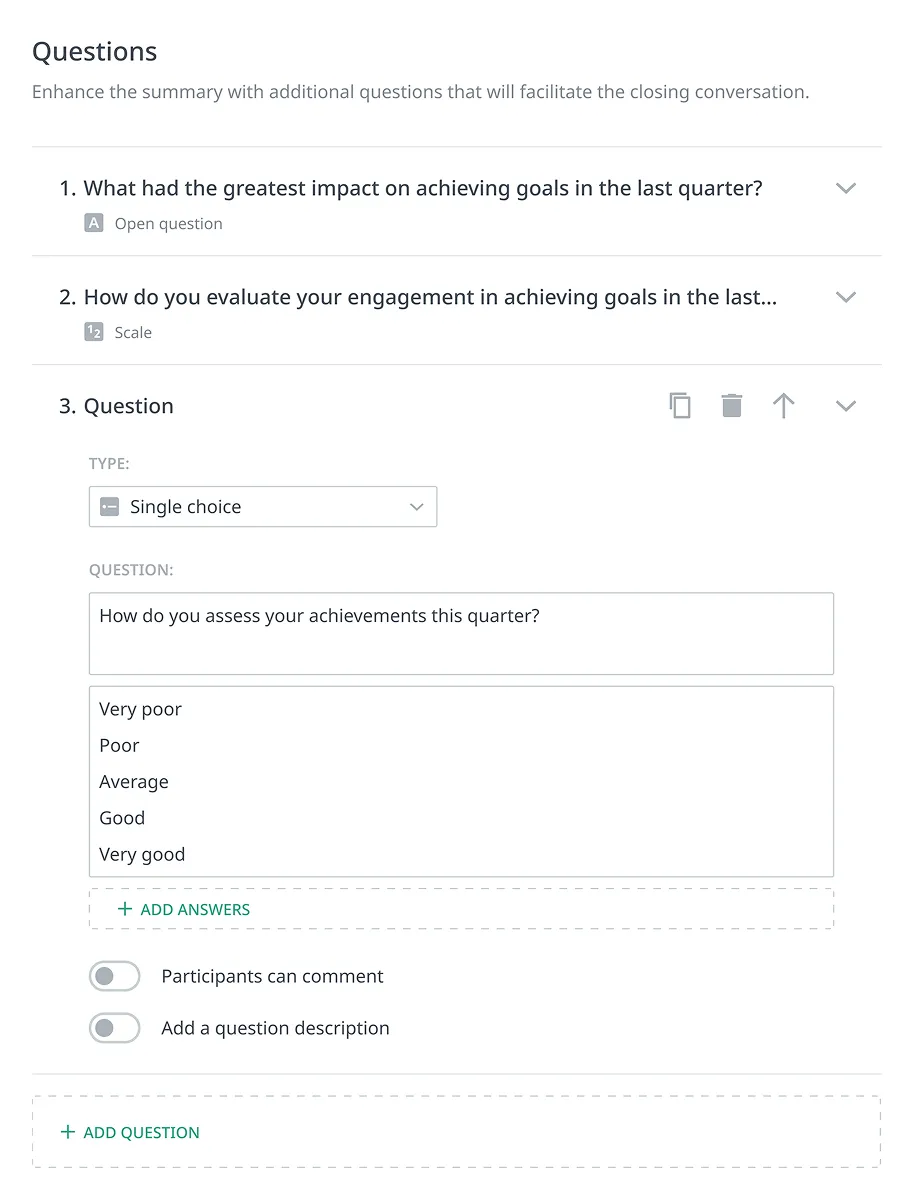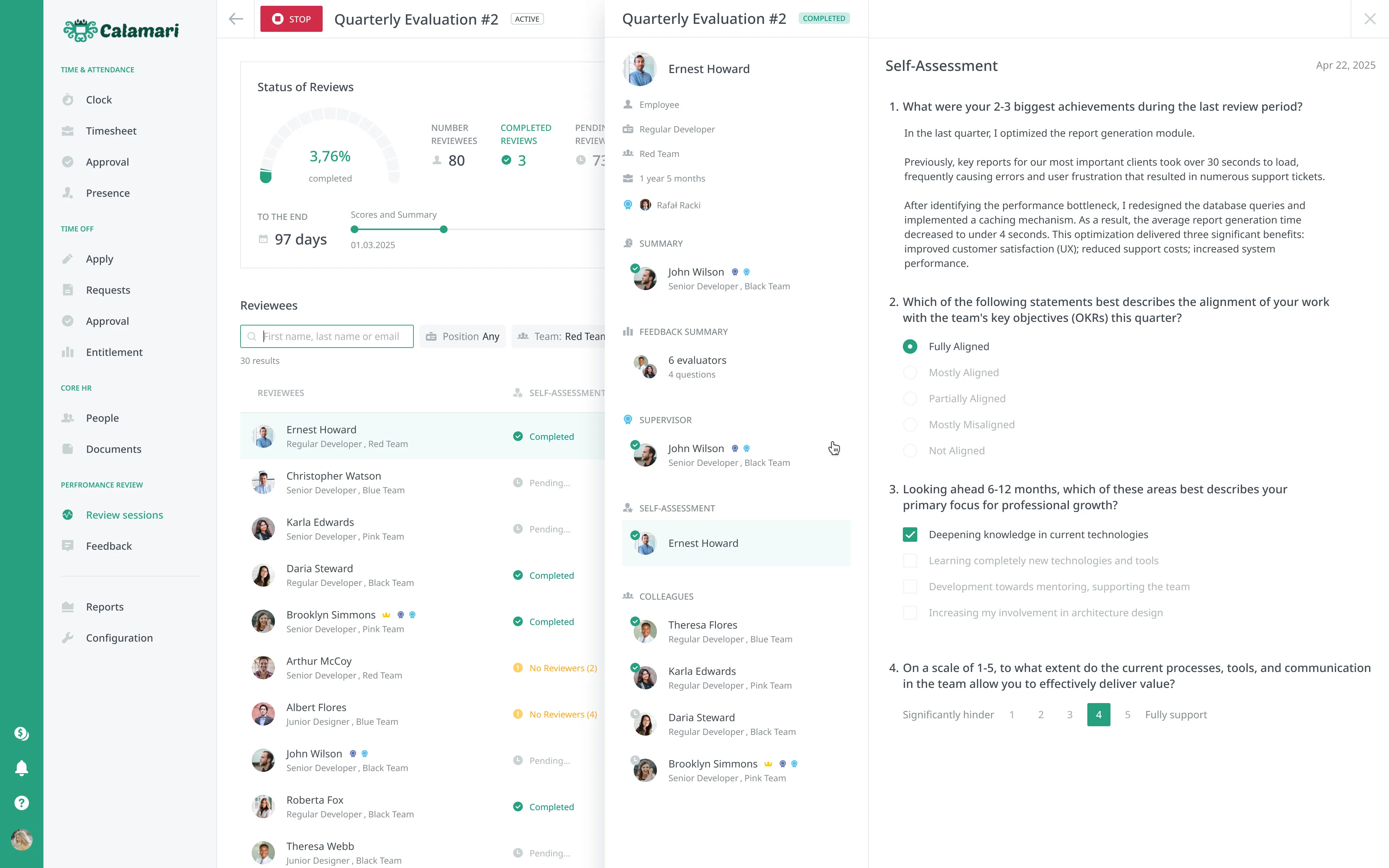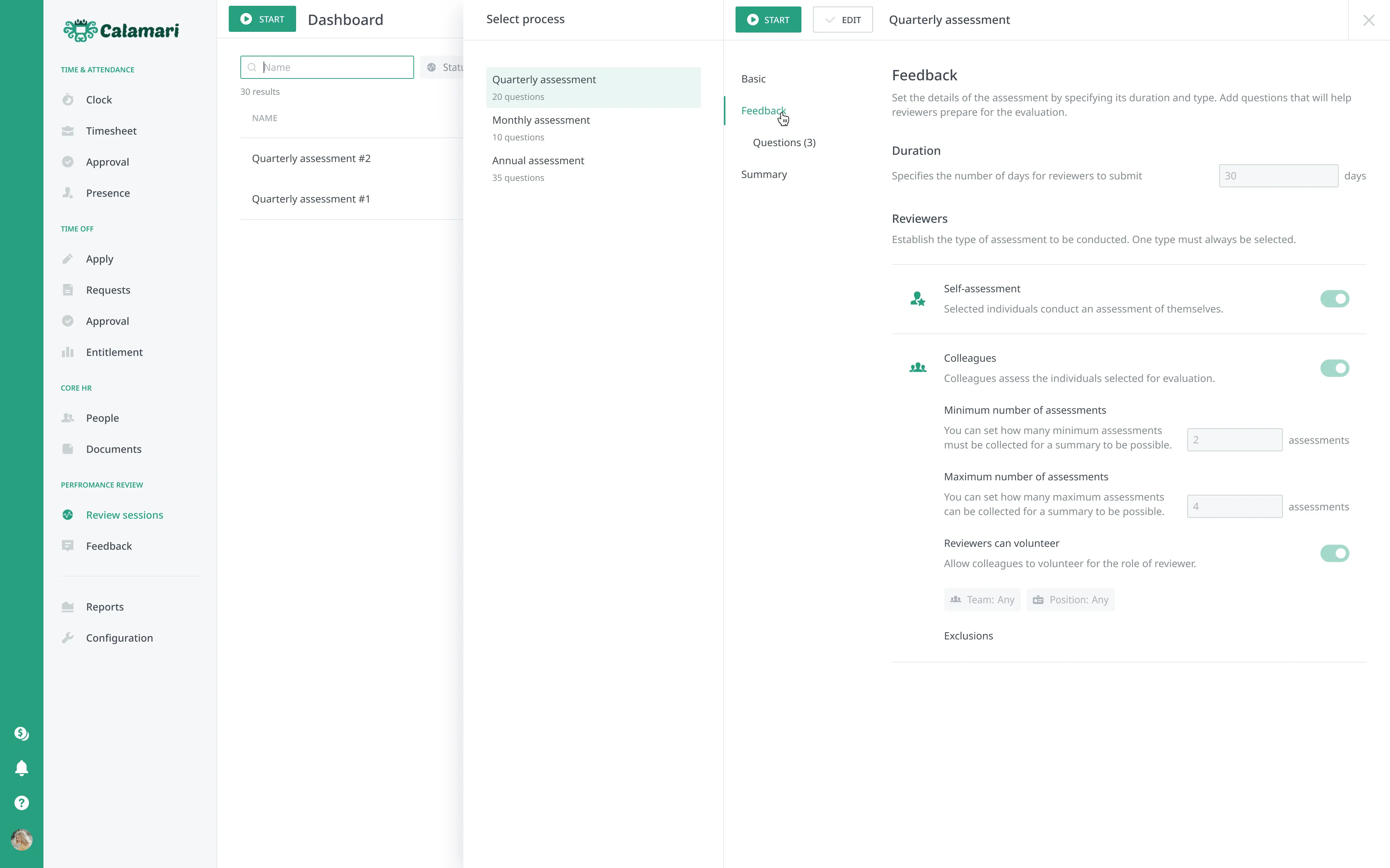 In Calamari, you design the process. Conduct annual, quarterly, or even project-based reviews. Our tool supports all key methods: