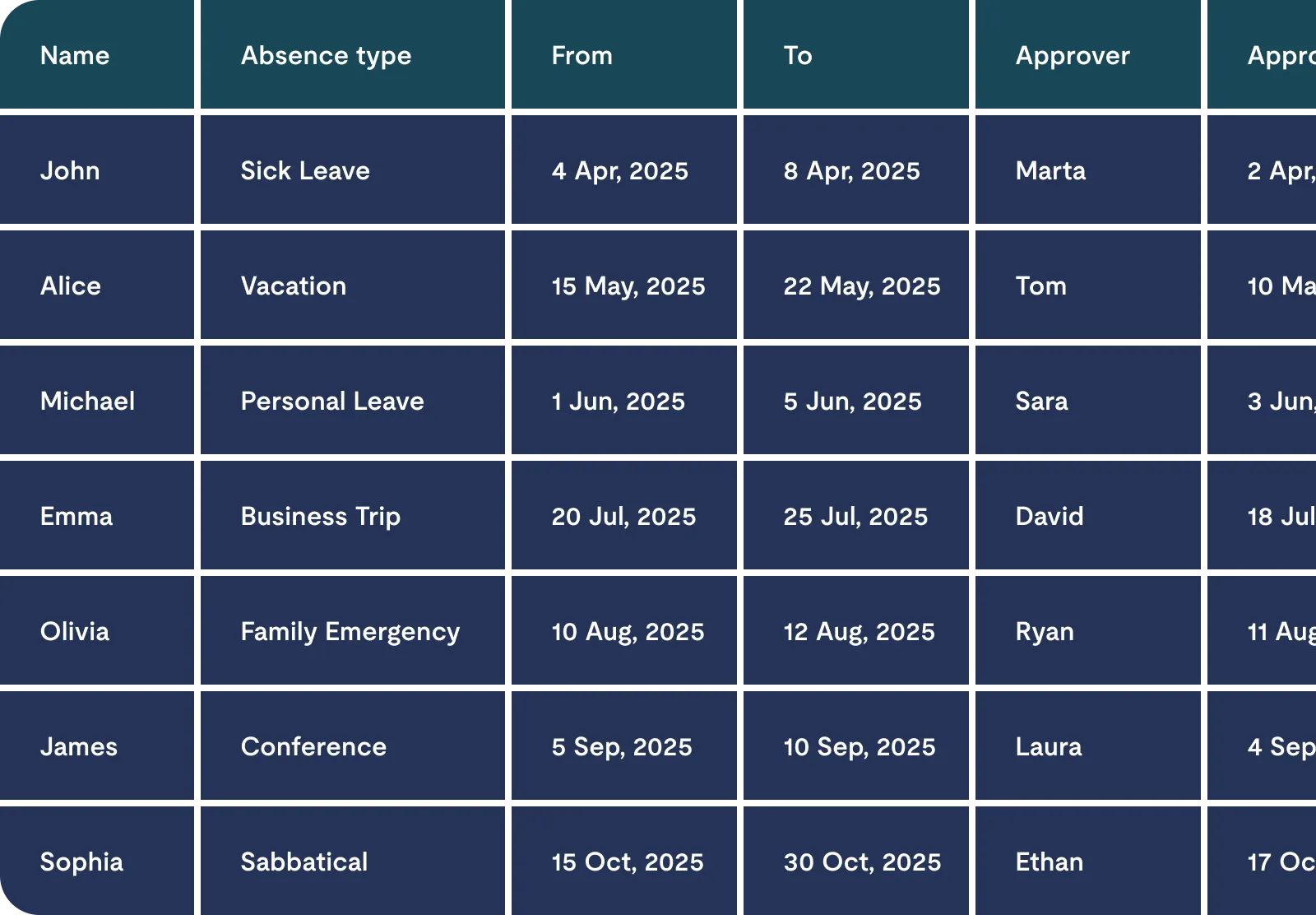 Reports are only useful when they answer a real question: what’s happening, why it’s happening, and what to do next. Calamari brings together time off, attendance, and Core HR data so you can spot issues early, prepare payroll faster, and make decisions based on facts — not guesswork.