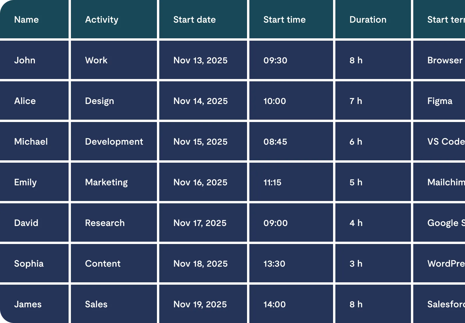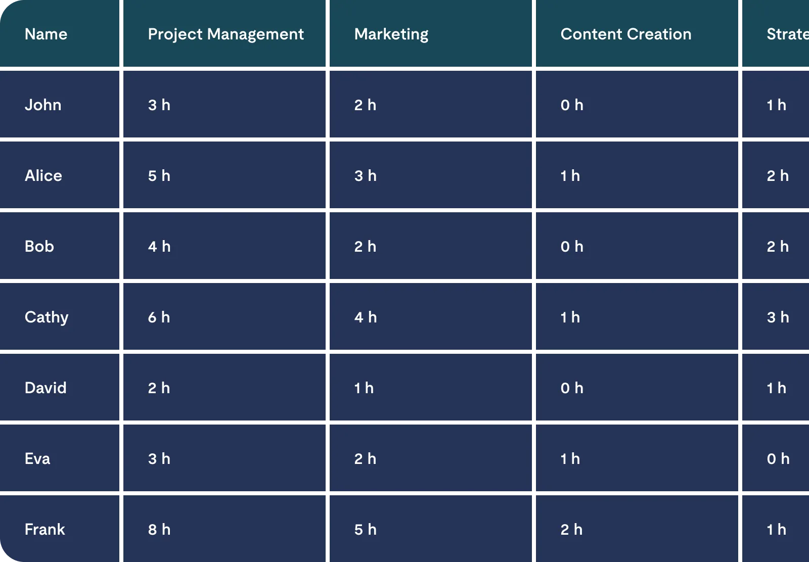 - No insight into actual productivity—just raw hours that don't show project allocation